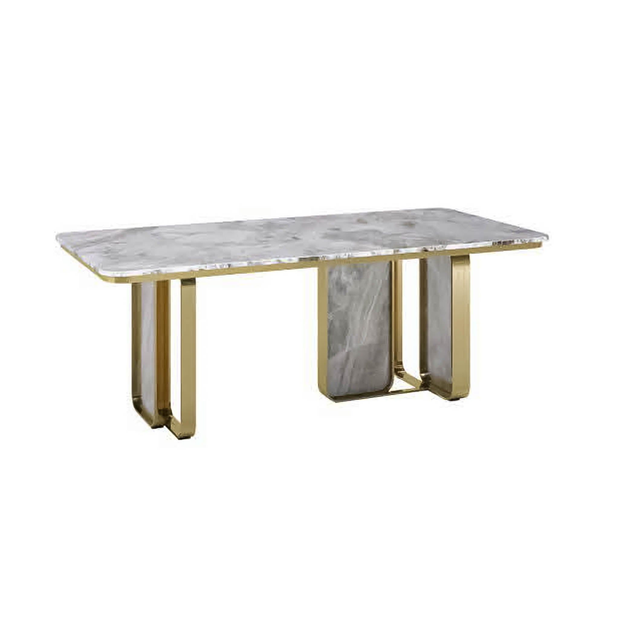 | - Mặt bàn bằng đá cẩm thạch thiên nhiên sang trọng ở Barcelona - 304 thép không gỉ mạ crôm hoàn thiện gương vàng HK - Đá cẩm thạch Iminated bên dưới |