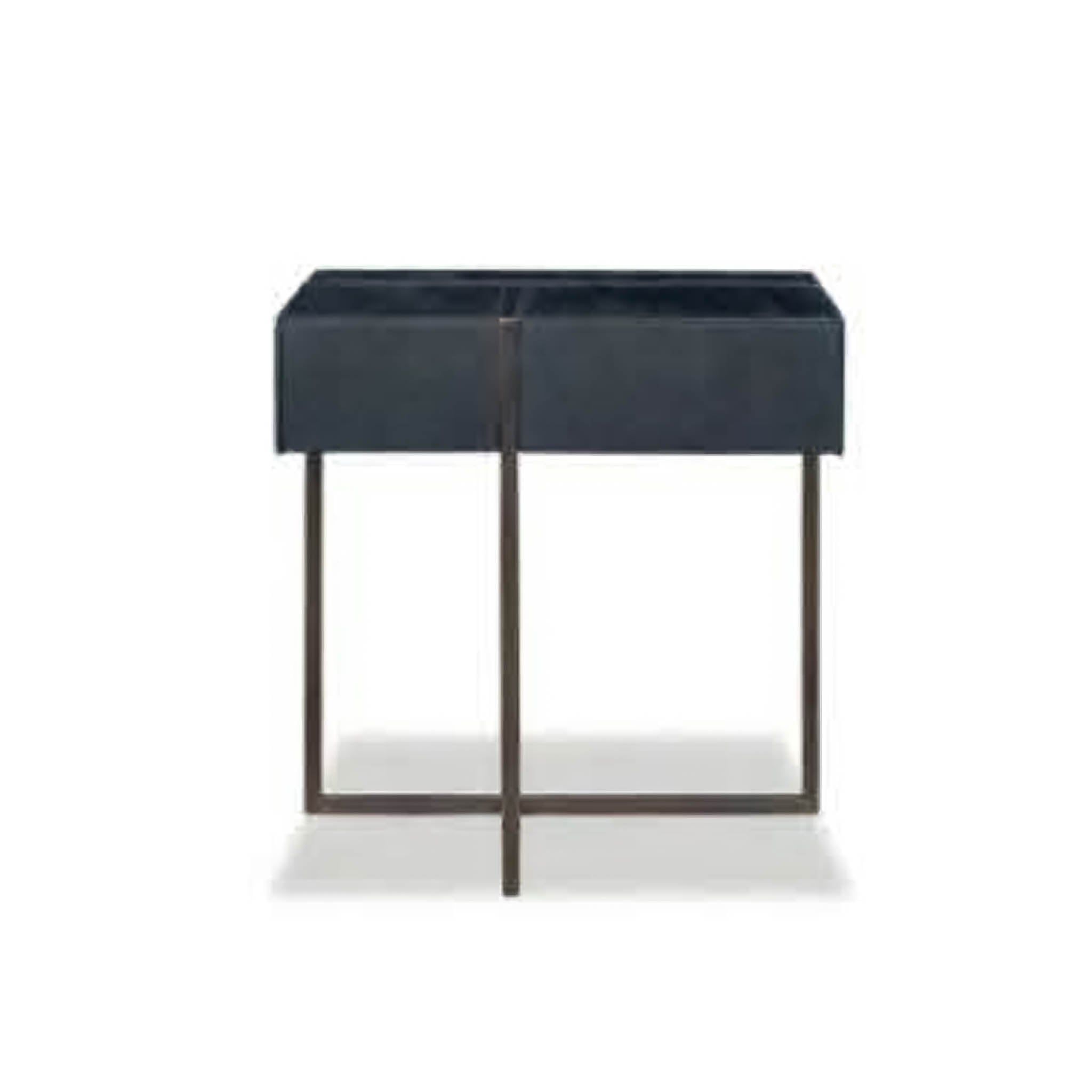 | - Tủ quần lót MDF - da bò nubuck bọc - Khung kim loại cũ màu đen |